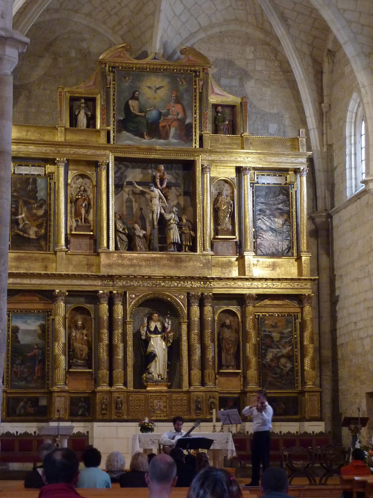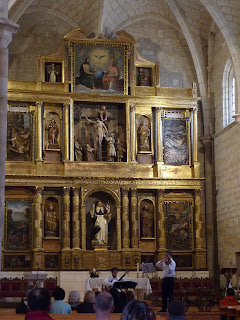 Huvos volt még a reggel. Az autóuton mentunk , elértuk Burgos kulvárosát. Repulotér, ipari csarnokok, autószalonok mellett haladtunk, sok-sok km-en keresztul. A látvány eléggé lehangoló volt. Négysávos úton kozeledtunk a kozpont felé. Alig vártuk, hogy elérjuk a Bazilikát. Spanyolország második legnagyobb Székesegyháza a XIII. században épult.  A belépo 5 euro, a zarándokoknak 2,5 euro. Tobb órán át nézelodtunk a katedrálisban, volt látnivaló boven. Mikor kijottunk, két órakor a homérséklet 33 fok volt, igyekeztunk elhagyni a nyuzsgo várost. Burgosban 12-13 km-ert tettunk meg. Áthaladtunk egy nyárfákkal benott árnyas parkon, az út fehér kovel volt leszórva, visszaverte a vakító napfényt. Villabilla-ban szálltunk meg, barátságos falu, kozért, étterem, kocsma van, de internetet itt sem találtunk.