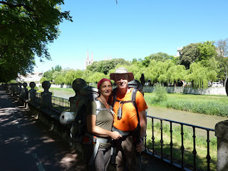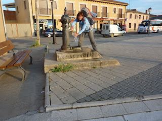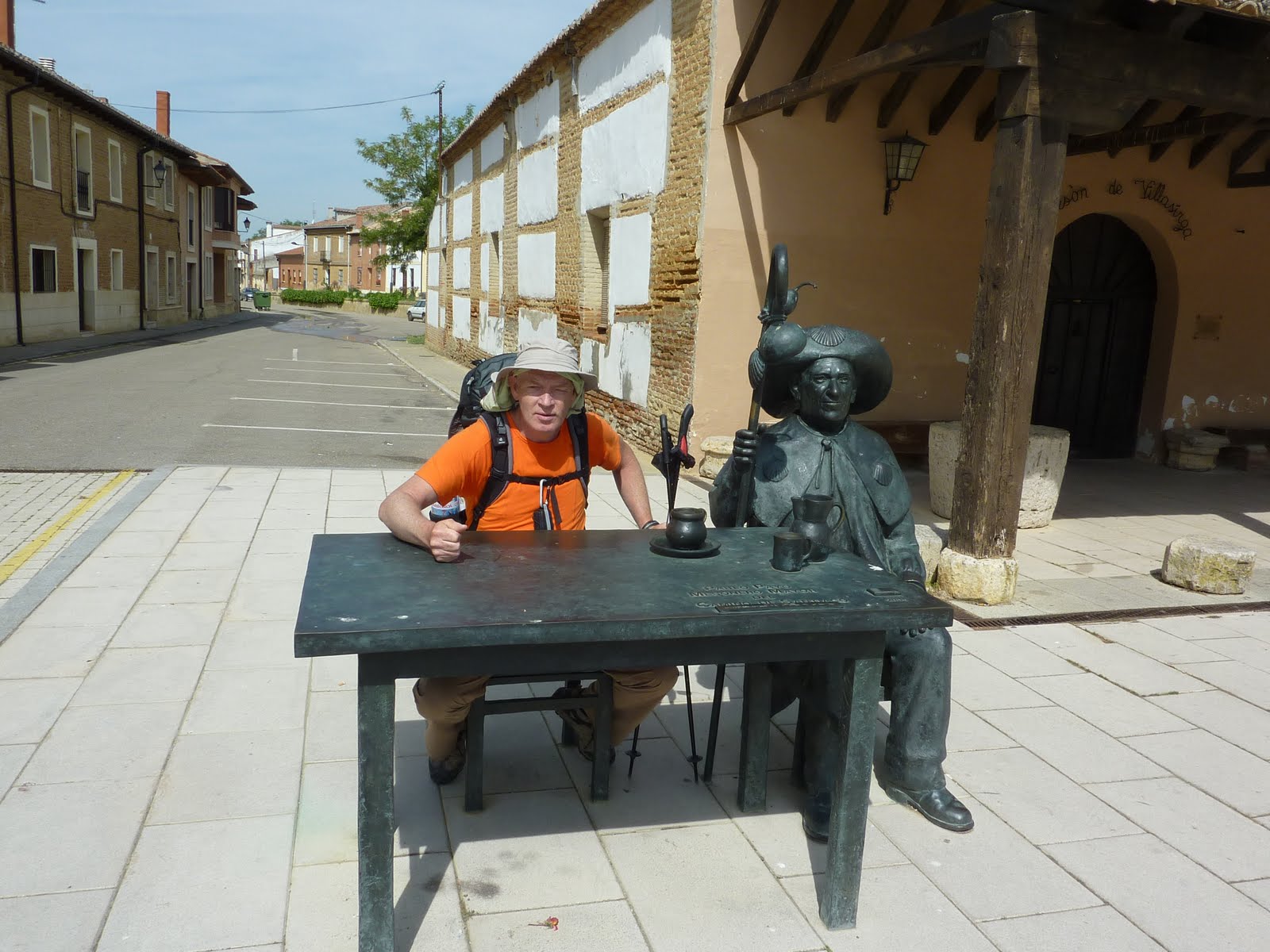 Nem tudtuk kipihenni elozo napi megtett utunkat. Rosszul aludtunk és keveset. Reggel hamar osszepakoltunk és továbbálltunk. Templarios-ban reggeliztunk ami a megszokott tejeskávéból és suteménybol állt, de nem is ez a fontos ezen a helyen hanem az, hogy elértuk az utunk felét. 396 km még innen Santiago a Csillagos mezo. Gyorsan menrunk hamar Sahagún-ba értunk. / 13 órára / Szállásunk apácák által fenntartott alberg. A Hospitales egy idosebb férfi, aki nagyon kedvesen fogadott. Négy ágyas szobában hárman aludtunk, egy biciglis apuka, két gyereke a mellettunk lévo szobában kapott helyett. A szobákon nem volt ajtó. A városban vaskerítéseket szereltek fel mert hétvégén bikafuttatást rendeznek. Megkérdeztuk a szállásadónkat , hogy hól lehet itt internetezni? O nem elmagyarázta, hanem elkisért minket a város foterére, és ott kérdezoskodott mert O sem tudta. Internetet ilyen segítséggel sem találtunk, viszont a fotéren egy csapat fiatal fiú énekelt és zsonglorkodott. Ok is a Caminót járják. Estére nagyon hideg lett, magunk által készített vacsorát az alberg kertjében fogyasztottuk el. Egy apáca is arra járt , kedvesen mosolygott, de nem beszélgetett senkivel. Korán lefekudtunk mert nagyon fáztunk. - Janoo - koszonom a sok kedves érdeklodést és jókívánságokat a lábam sokat javult, nincs már bedagadva, begyulladva. -
