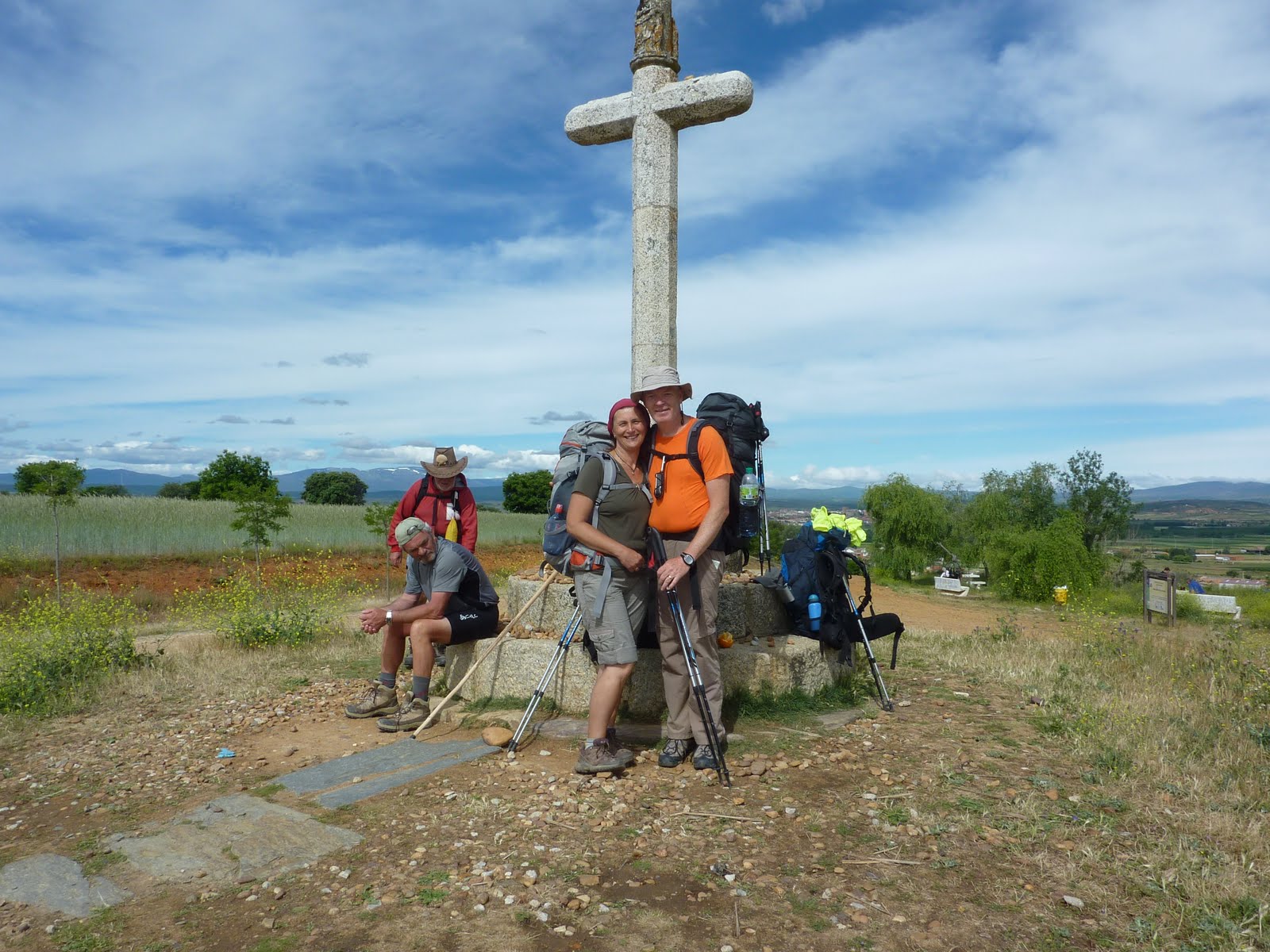Az alberg jó dontésnek bizonyult, felújított, tiszta, és 10 ágyas szobában oten aludtunk. Reggeli után, napkelte elott indultunk, felhos hideg idoben. Az utunk szép mezokon majd ritkás erdokben vitt. Az emelkedo elott forró kakaót ittunk és nekiindultunk felfelé a hegyeknek. A kozeli hegyeken jól láthattuk a hófoltokat. Néha hideg szél fújt,bizony kellett a kabát. Jó kedvuen kanyargós utakon mentunk. Meg-megálltunk gyonyorkodni a táj szépségében. Nagyon vártuk, hogy felérjunk Cruz de Ferro azaz a vaskereszthez, 1505 méter magasságba. Egy olasz biciglis csapat fényképezkedett,  hangoskodott sokáig. Megvártuk, hogy magunk lehessunk a keresztnél. A nagy kavicskupacra leraktuk mi is az otthonról hozott koveinket. Az ott lévo kápolna elott leultunk megpihenni. A gondozott úton ertuk el Manjarint, ahol Thomas nevu lovag tart fenn egy nomád jellegu kis alberget.